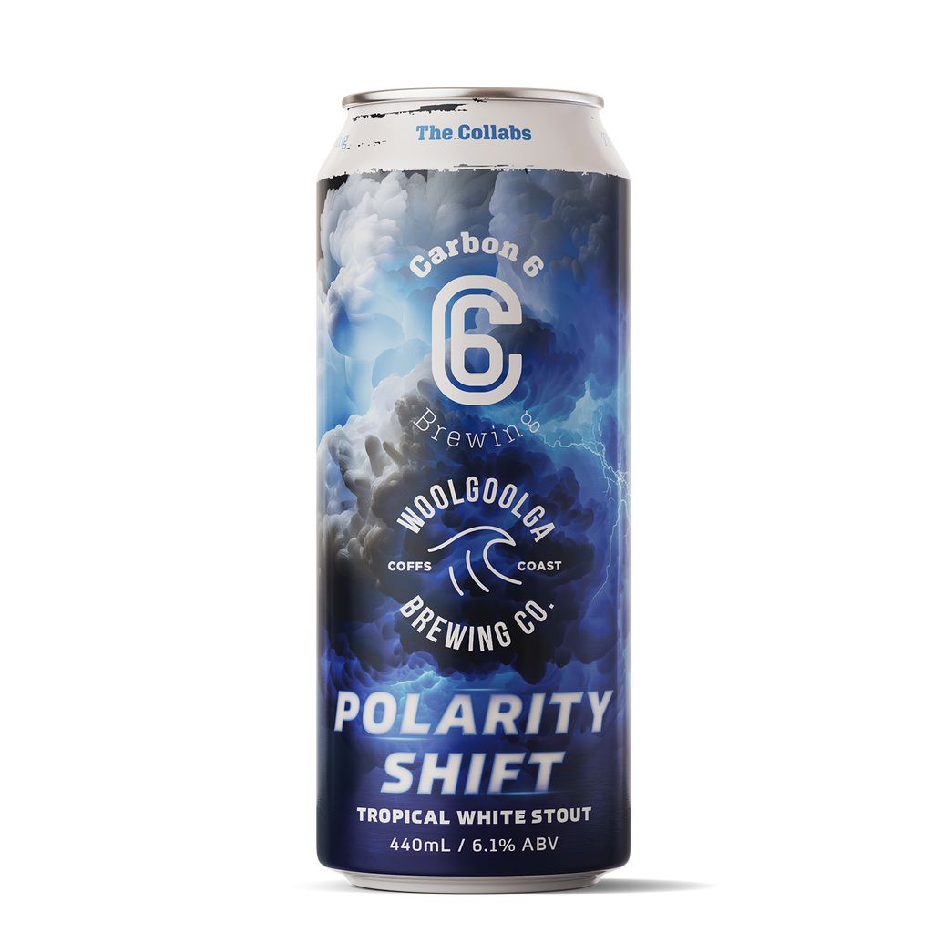 Polarity Shift is our second collaboration this year and is a Tropical White Stout! It's full of flavours that will twist your mind with that signature Carbon 6 quality.